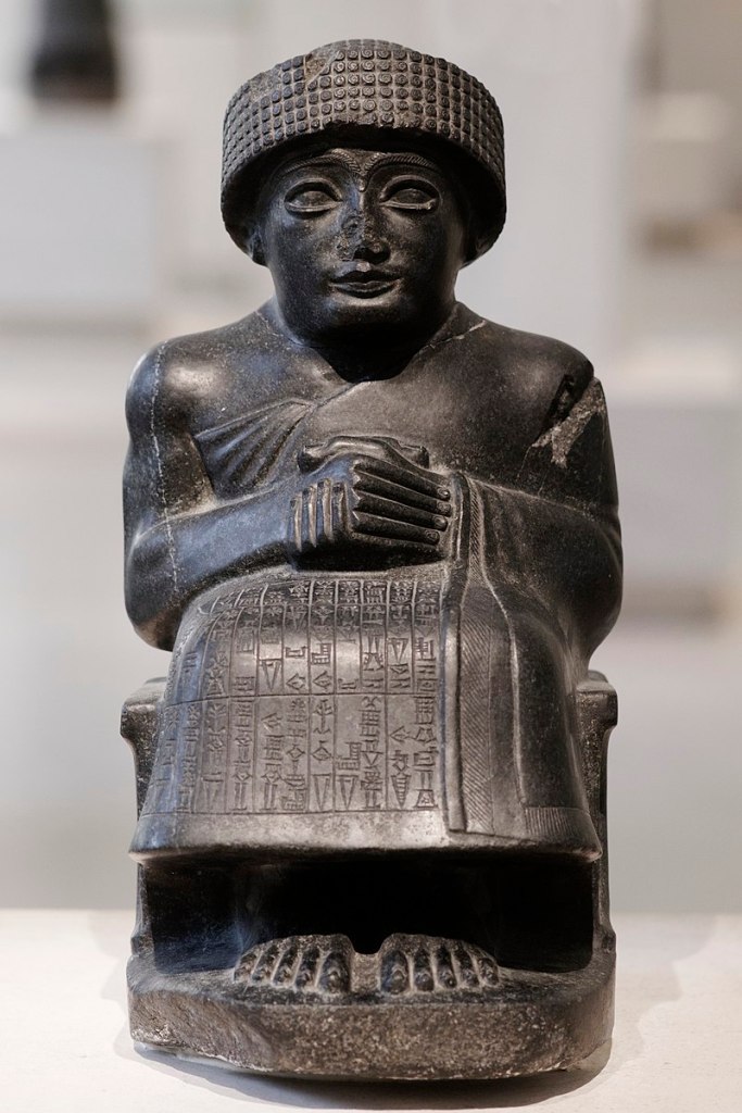 Iconic examples of Sumerian sculpture include the statues of deities and rulers, such as the votive statues of worshipers with clasped hands and the famous statues of Gudea, the ruler of the city-state of Lagash. These sculptures often served religious and ceremonial purposes, depicting gods, goddesses, and royal figures in elaborate ceremonial attire and symbolic poses.