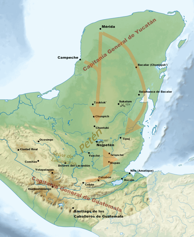 1697: The Spanish defeat the Itza Maya at the Battle of Nojpetén, marking the final conquest of the Maya civilisation.